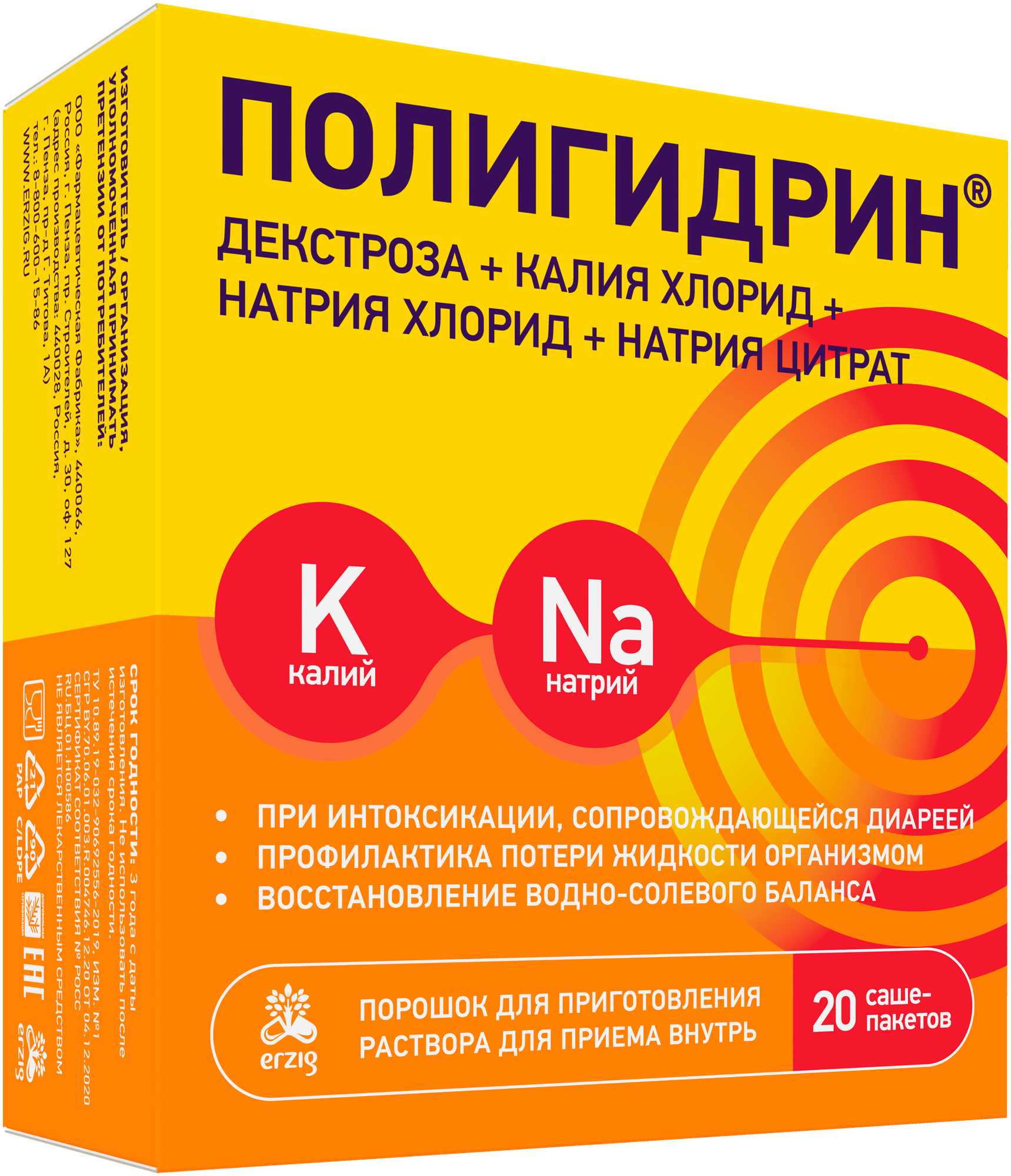 Полигидрин пор д/приг р-ра д/внут прим №20 (декстроза + калия хлорид + натрия хлорид + натрия цитрат)
