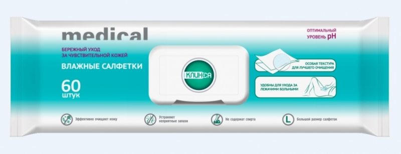 Клинса салфетки влаж №60 д/лежачих бол-х с клапаном